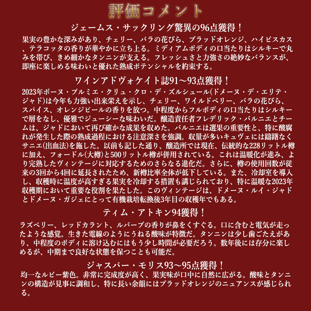 ルイ・ジャドがテロワールに最大限敬意を払い造るボーヌ一級畑最高の逸品が、高評価連発ヴィンテージでグレイトヴィンテージ[2023]年で、しかもルイ・ジャドの元詰のしかもセラーからの蔵出し品!しかもプリムールものでしかも正規品で極少量入荷!