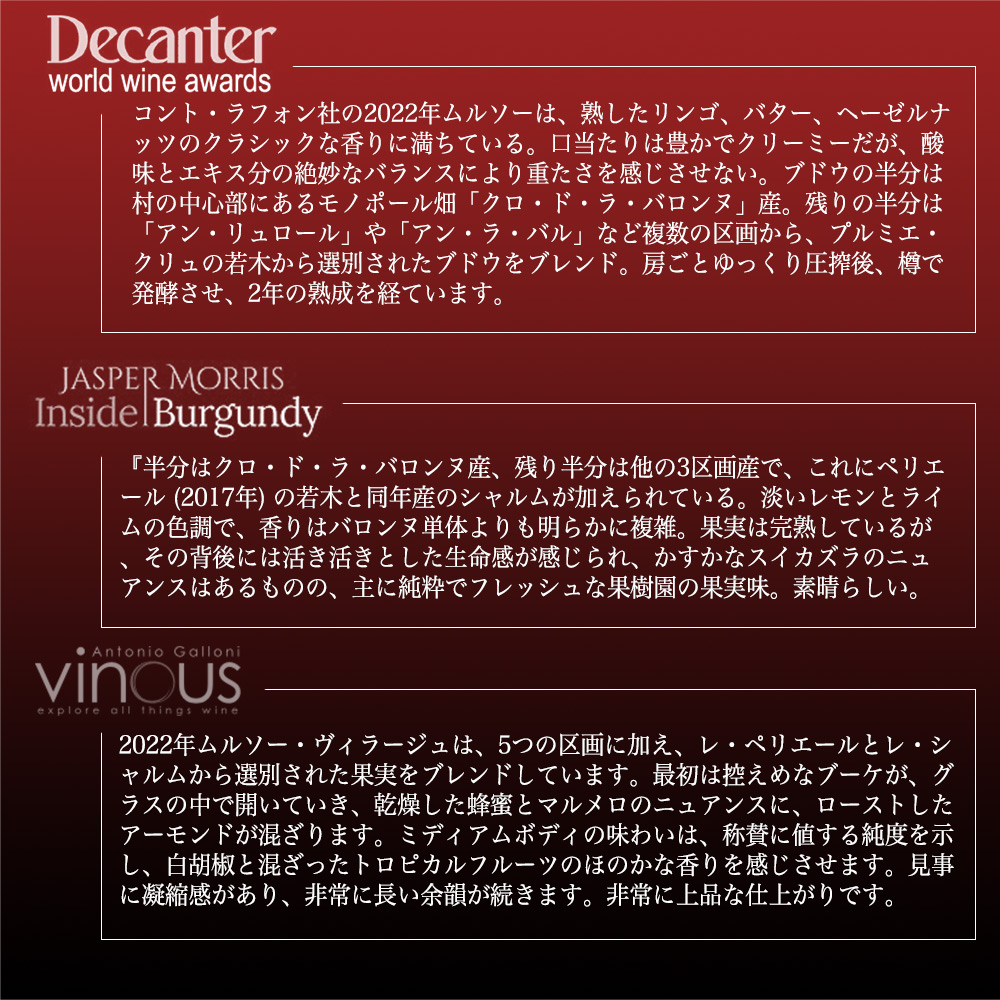 圧巻の完成度の偉大なコント・ラフォンの超高級ムルソーがスーパーグレイトヴィンテージ[2022]年で蔵出しで超限定入荷!