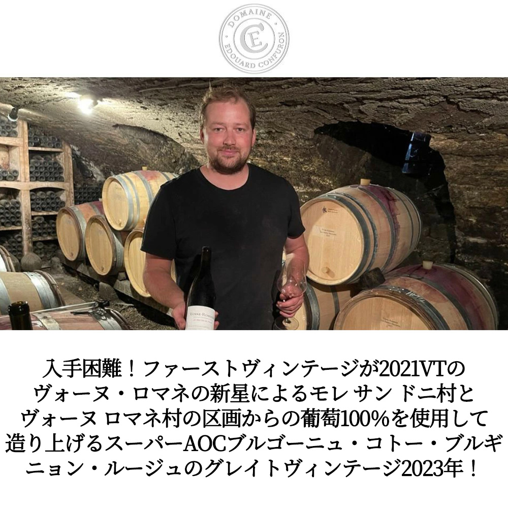 しかもヴォーヌ・ロマネの新星!「フランソワ・コンフュロン・ジャンドル」の当主フランソワの息子、エドワールが2021年に独立して立ち上げた新進ワイナリー。