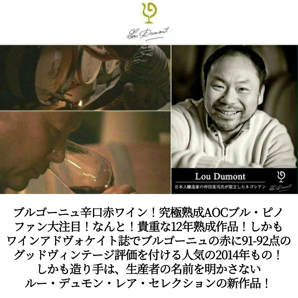 造り手は、NHKの「プロフェッショナル 仕事の流儀」にも登場!あの『神の雫』にも登場!アシェット・ガイド誌も大注目!のルー・デュモンの仲田氏が各ドメーヌを回り、気に入ったバックヴィンテージ!飲み頃オールドヴィンテージをボトルで買い、生産者の名前を明かさないでルー・デュモン・レア・セレクションとして発売!