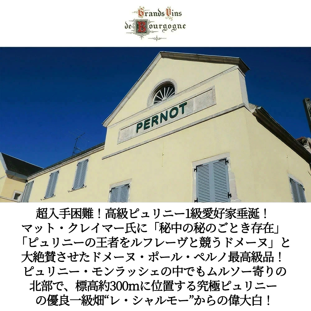 造り手はワイン評論家のマット・クレイマー氏に「秘中の秘のごとき存在!」「ピュリニの王者をルフレーヴと競うドメーヌ」と大絶賛させたドメーヌ・ポール・ペルノー!