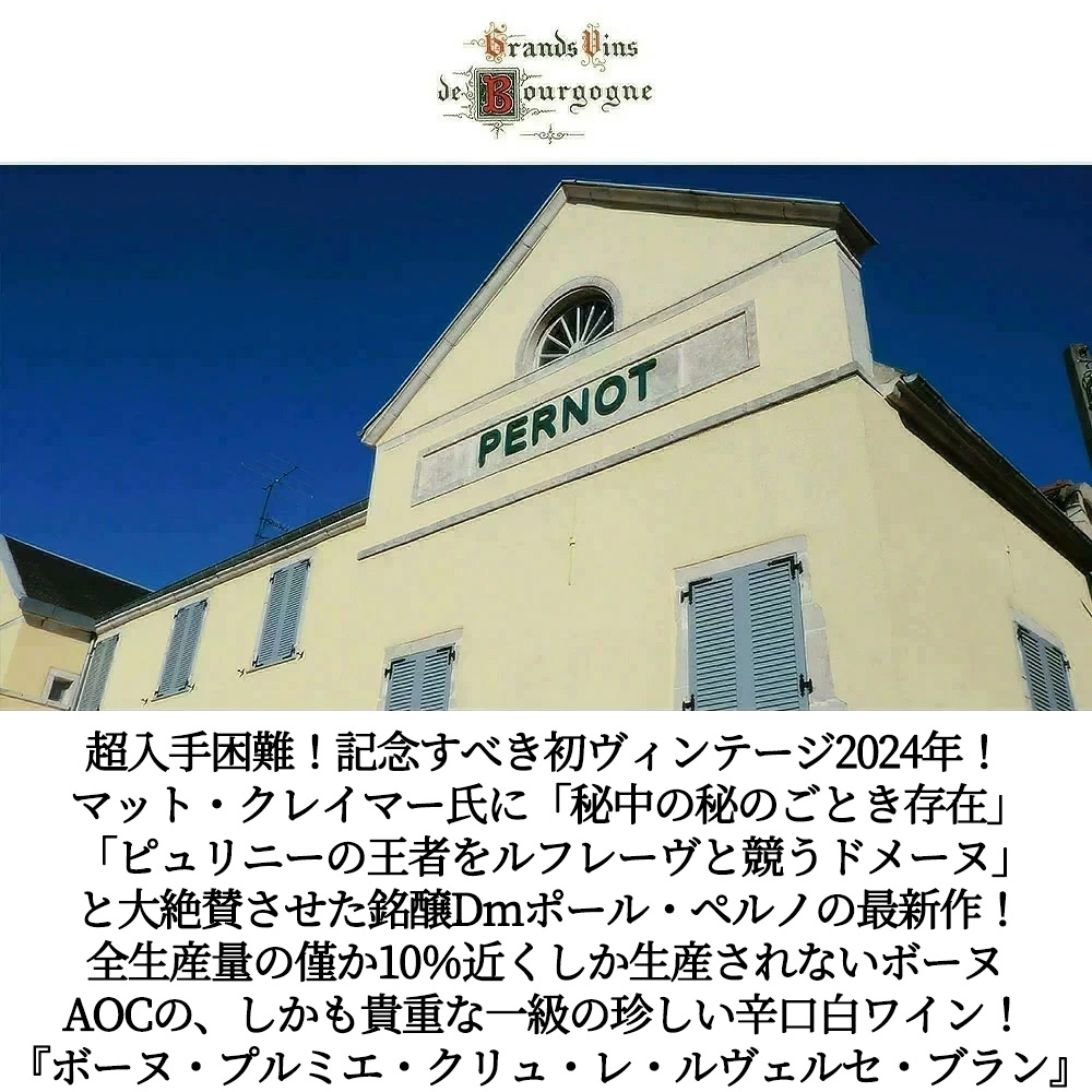 「秘中の秘のごとき存在」「ピュリニーの王者をルフレーヴと競うドメーヌ」と大絶賛させた銘醸ポール・ペルノによる記念すべき初ヴィンテージ作品!全生産量のわずか10%近くしか生産されないボーヌAOCの、しかも貴重なプルミエ・クリュの珍しい辛口白ワイン!しかも収穫量が激減した希少ヴィンテージで大人気[2024]年もの!