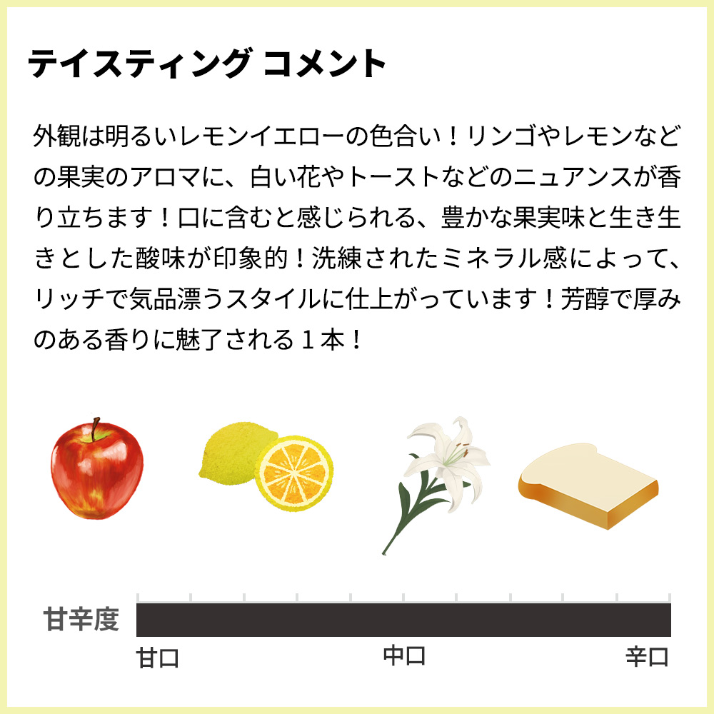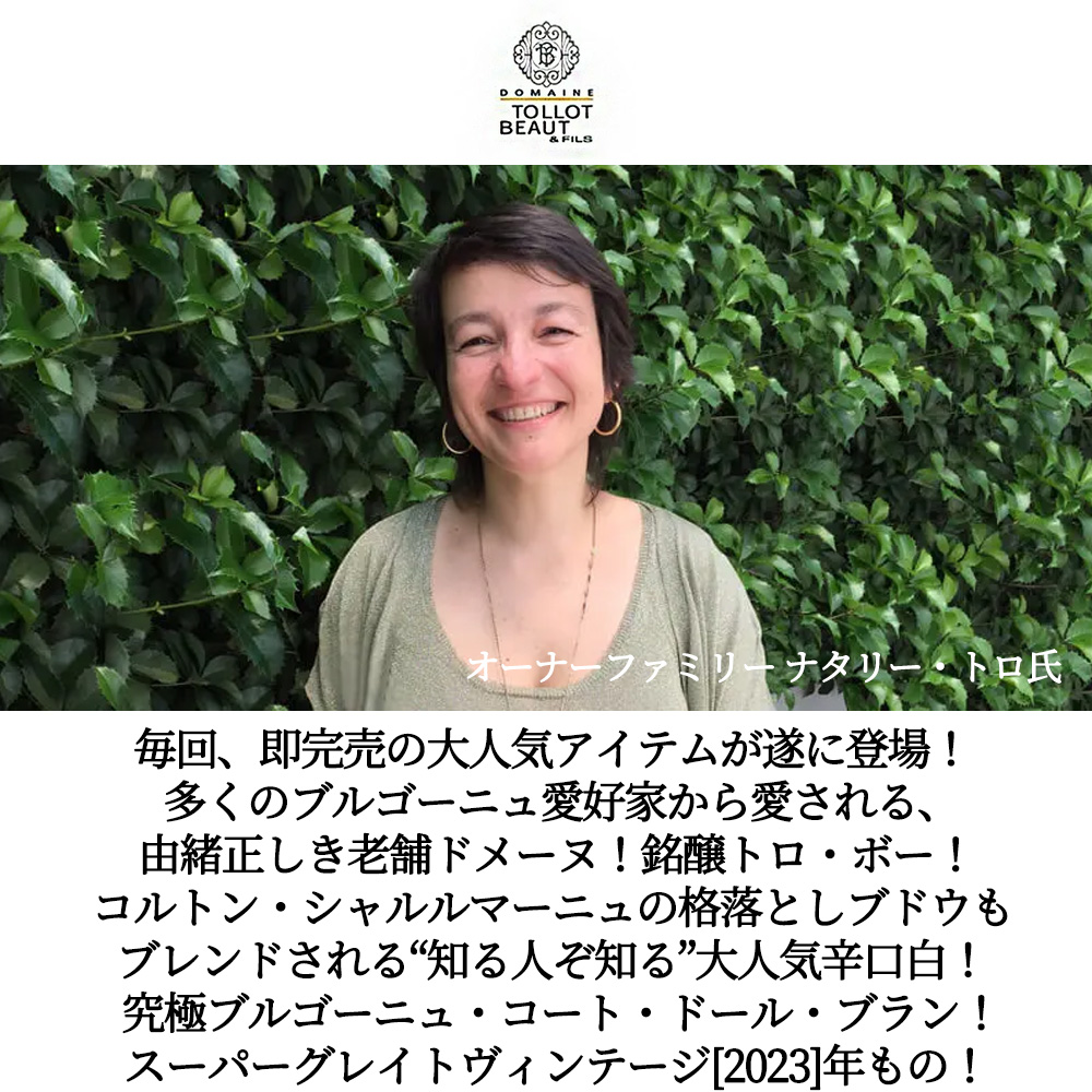 コルトン・シャルルマーニュの格落としブドウもブレンドされており、「程よい樽香のブルゴーニュ・ブラン」と言われる“知る人ぞ知る”大人気辛口白ワイン!