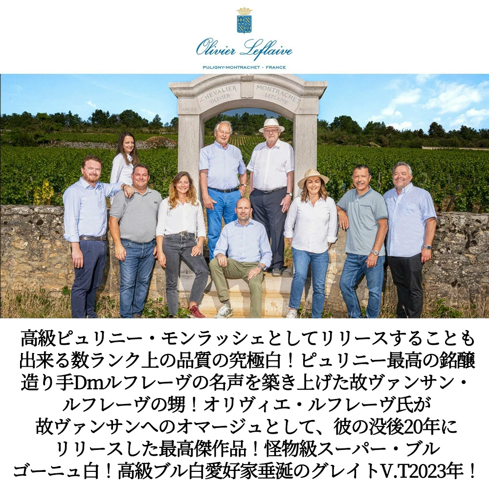 造り手はあのピュリニー・モンラッシェ最高の造り手の1人である、ドメーヌ・ルフレーヴの名声を築き上げた、故ヴァンサン・ルフレーヴの甥!ピュリニー・モンラッシェ最高の造り手の一人として知られるオリヴィエ・ルフレーヴ!による究極スーパー・ブルゴーニュ・シャルドネ! 「オンクル・ヴァンサン」 (=フランス語でヴァンサン叔父さん) と名付けられたドメーヌ・ルフレーヴの名声を築き上げた故ヴァンサン・ルフレーヴへのオマージュとして、彼の没後20年にリリースされた最高傑作品!