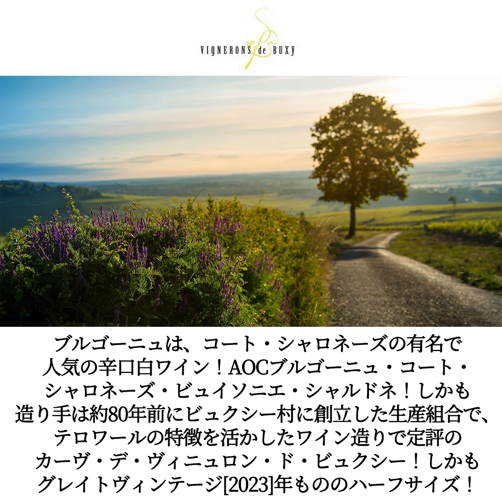 しかも造り手は、コート・シャロネーズの約120軒の生産者たちが約80年前にビュクシー村に創立した生産組合で、テロワールの特徴を活かしたワイン造りで定評!しかもアラン・ピエールを醸造家兼テクニカルディレクターとして迎え、さらに品質急上昇中のカーヴ・デ・ヴィニュロン・ド・ビクシーの元詰白ワイン!