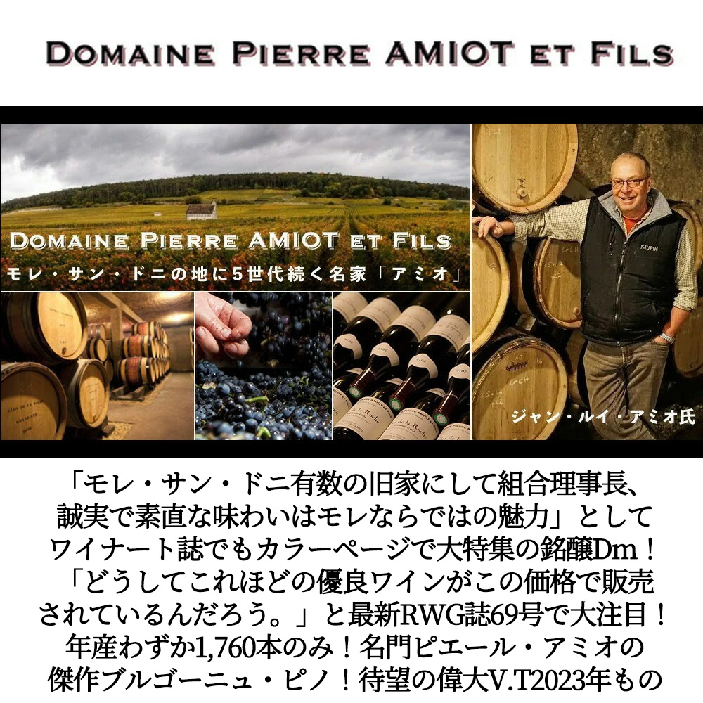 ドメーヌ・ピエール・アミオによる毎回即完売アイテム!わずか0.34haの石灰質土壌の畑からの樹齢45年のピノ・ノワール100%をオーク樽熟成16ヶ月で造られる究極AOCブルゴーニュ・ピノ・ノワール!果実のピュアな味わいが綺麗に表現され、品が良く、エレガントで美しいピノ・ノワール!