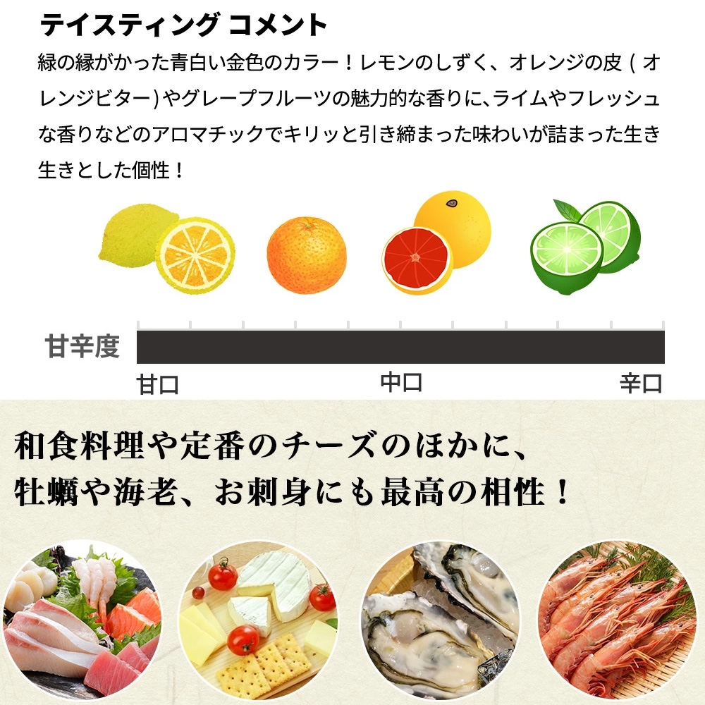 緑の縁がかった青白い金色のカラー!レモンのしずく、オレンジの皮(オレンジビター)やグレープフルーツの魅力的な香りに、ライムやフレッシュな香りなどのアロマチックでキリッと引き締まった味わいが詰まった生き生きとした個性!はつらつとした酸が心地よく見事に熟しながらも余韻のキレのある辛口の究極シャブリ!
