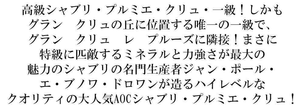 まさに今、飛ぶ鳥を落とす勢いのブノワ・ドロワンによる蔵出し作品の人気シャブリ一級!まさに!しかも彼らのプライドを色濃く体現した人気のプルミエ・クリュが限定で少量入荷!