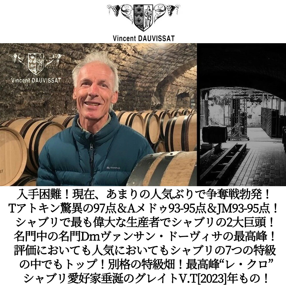 シャブリで最も偉大な生産者!現在、シャブリの2大巨頭のひとつ!ドメーヌ・ヴァンサン・ドーヴィサの最高峰特級レ・クロ!