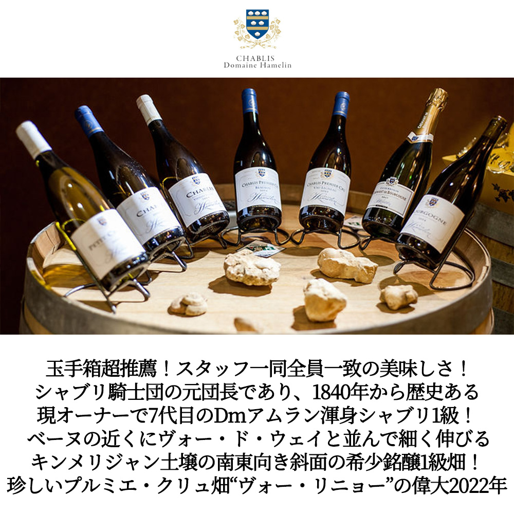 南東向きの最上の畑から造られるこの一級シャブリのヴォー・リニョーは、他のシャブリと比べ、非常に凝縮した果実味と、まろやかでミネラル分に富んだ味わいが引き出され、華やかな香りと引き締まったドライな口当たりは注目に値します!