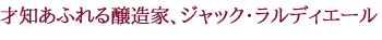 同社のワイン醸造の責任を担っているのは、才知あふれる醸造家のジャック・ラルディエールです。1970年からルイ・ジャドのワインに携わってきた彼のポリシーは、あらゆるワインにおいて、テロワールの個性を最大限引き出すことにあります。そのため、ブルゴーニュ・ワインの醸造にとって重要な役割を果たすオーク樽は、ルイ・ジャド社の資本のもと、1996年、ラドワ・セリニー村に創立した樽製造会社カデュスで作られています。ここでは樽材の乾燥から組み立てまで一貫した生産が行われ、オーク樽の品質を徹底的に管理することができるようになりました。