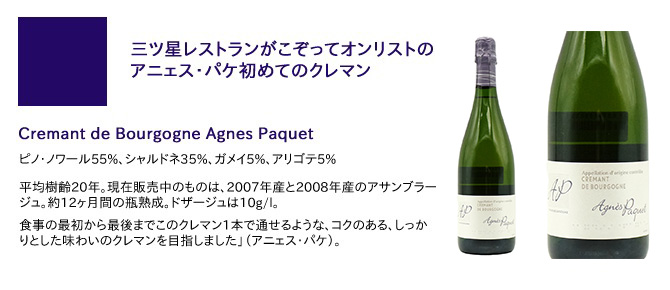 クレマン・ド・ブルゴーニュ N.V. アニェス・パケ 750ml (スパークリングワイン フランス 白 箱なし) 家飲み