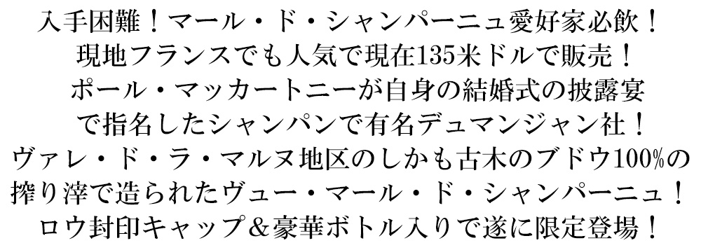 あのポール・マッカートニーの結婚式のシャンパンで大人気のデュマンジャン・シャンパーニュから高級ヴィエイユ・フィーヌ・ド・シャンパーニュがついに入荷!