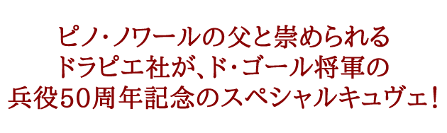 軍営の側近であったデュ・ボンネヴァ大佐がシャンパン・ドラピエの愛飲者であった関係で、ド・ゴール将軍はドラピエのシャンパンと出会うことになった。特に、ピノ・ノワールの豊な風味が楽しめるエキストラ・ドライが彼のお好みであった。1990年6月18日、彼の兵役50周年祝典を記念して、彼の肖像画をシャンパンに描きこんだ「コレクション・シャルル・ド・ゴール」がこの歴史的人物に対する尊敬の念を込めて製造販売されたのである。