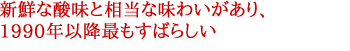 2005年ヴィンテージののシャンパーニュについて、ロバート・パーカー氏は91点をつけ、 「新鮮な酸味と相当な味わいがあり、1990年以降最もすばらしい。」と激賞!