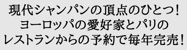 グラン・クリュのシャルドネ100%で最低4~5年間の瓶熟成。ヴァン・ド・レセルヴ20%は最低3~5年分、ドサージュは6g/L。