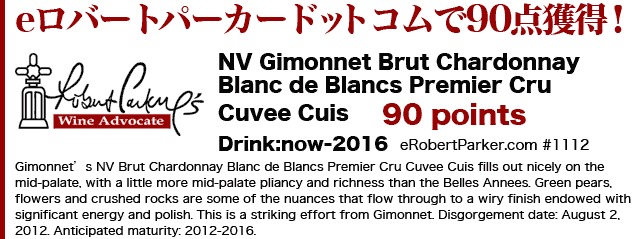 シャンパーニュ ピエール・ジモネ ブリュット キュイ・プルミエ・クリュ ステファン・タンザーはキュヴェ・キュイについて 「淡い黄色。複雑でわずかにエキゾチックなマンダリン リンゴ、桃やスパイスのアロマ。ジャン・マール・ボワイヨのピュリニーモンラッシェを思い出させる。豊かだがドライなほうだ。 飲みやすくて魅力的でミネラル・オレンジ スターアニスやタラゴンの風味を伴う程よい長さのフィニッシュは、まだわずかにエッジが固め」とコメント。 ル・クラスマン誌(現レ・メイユール・ヴァン・ド・フランス誌)はキュヴェ・キュイについて 星付で「どれをとっても素晴らしい。重さも不要な糖分もなく素直で純粋な味わいを好むシャンパンファンに打ってつけ。」と大絶賛!
