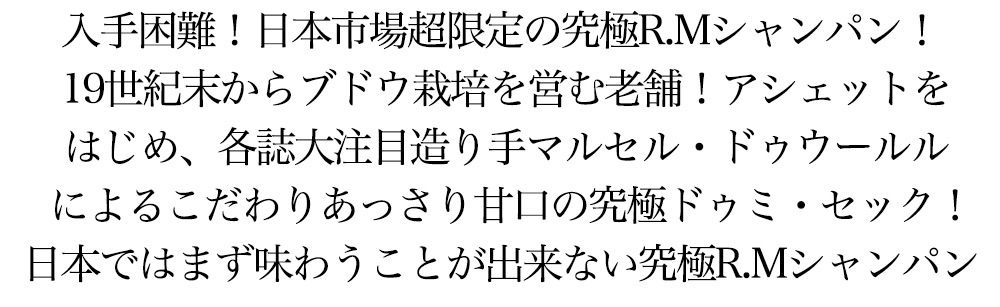 マルセル・ドゥウールル・シャンパーニュ ■葡萄品種:ピノ・ノワール85%/シャルドネ10%/ピノ・ブラン5% 自然派リュット・レゾネのドゥミ・セック!アシェット・ガイド誌2023年版で★★Wスターで大注目!!オパル エ サンスがシングルスターの快挙!ほぼ毎年連続掲載! ブノワ氏のポリシーである「とにかくできるだけ長く畑にいて細かい自然の変化をつかみながら、最良のブドウを収穫すること」を徹底し、実践!ブノワ氏が超こだわりのもと造る究極シャンパーニュ! このシャンパーニュ・ドゥミ・セックは、粘土石灰質土壌からの樹齢30年のピノ・ノワール50%、シャルドネ40%、ピノ・ブラン10%(厳格なリュット・レゾネ栽培)で造られる究極ドゥミ・セック。
