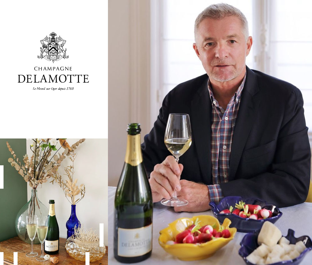 ドゥラモットは1760年創業のシャンパーニュ・メゾン。今日のドゥラモットは、その拠点をコート・デ・ブランのグラン・クリュのひとつ、ル・メニル・シュール・オジェ村に置き、あの幻のシャンパーニュ、「サロン」の姉妹メゾンという位置づけを担っています。サロンはご存知のとおり、単一品種、単一クリュ、単一収穫年のシャンパーニュのみを生産し、この100年間にリリースされたのはわずか30数ヴィンテージすぎないのですが、ではサロンが造られない年、そのブドウはどうなるのかといえば、このドゥラモットのために使われるのです。