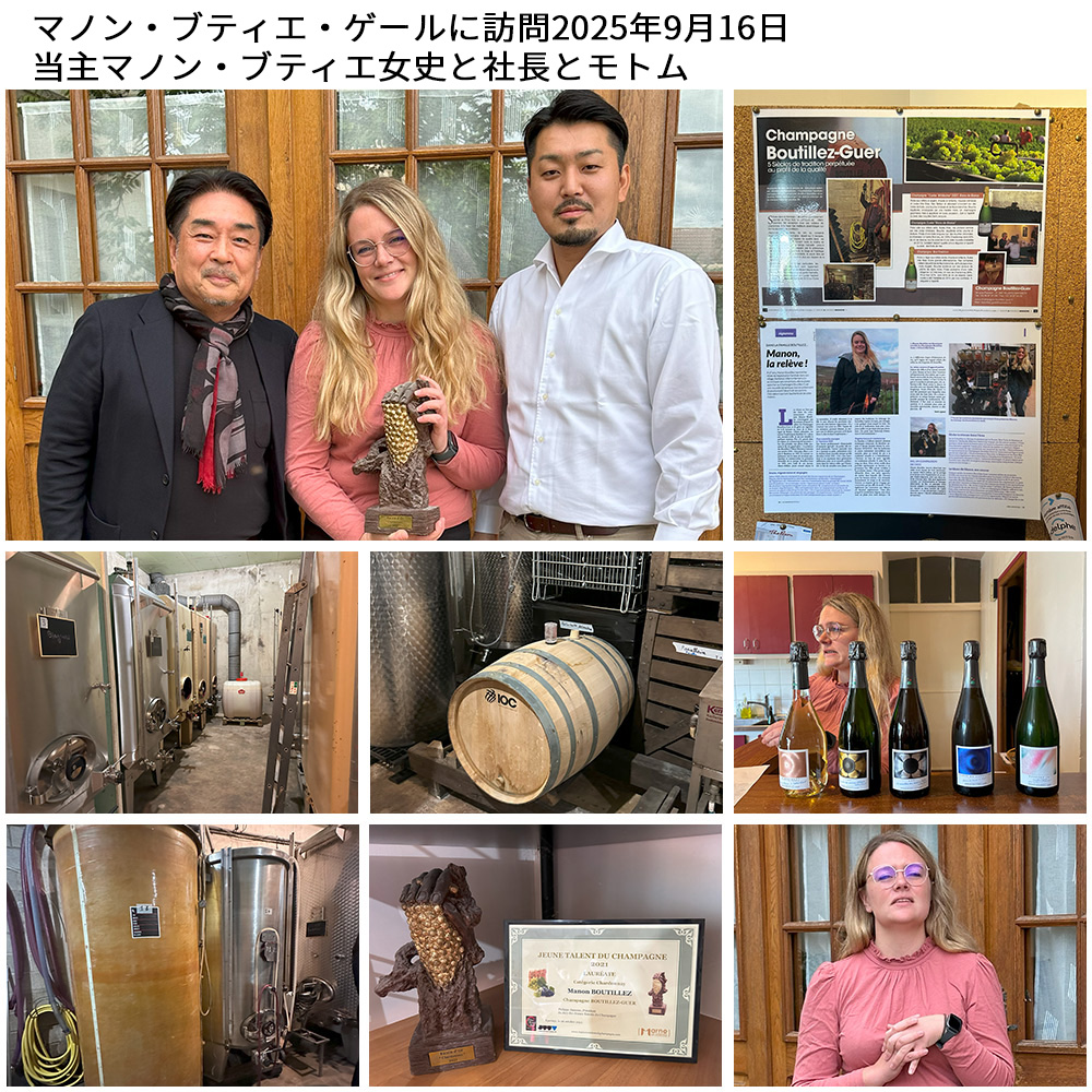 総植樹面積246ヘクタールのうち98.1%をシャルドネが占めるヴィレ・マルムリーで、ブティエ家はこの村の名家。ドン・ペリニヨン修道士によるシャンパンの誕生よりもはるか前、16世紀初頭にはすでにワインを造っていたという記録が残っています(日本は室町時代!)1981年に継承した12代目マルク・ブティエとゲール家出身の奥様との結婚を経て、2018年、看護婦をしていた娘のマノンが跡を継ぐことを決意。2020年に正式継承してRM「マノン・ブティエ・ゲール」に生まれ変わり、ラインナップもリニューアルされました。