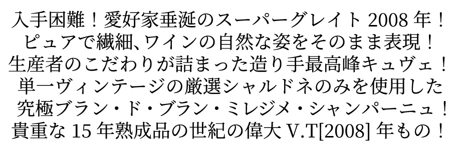 造り手のフィリップ・ドゥシェルの最高峰キュヴェ!フィリップ・ドゥシェルが造るシャンパーニュの中でも、最上級に位置づけられる、単一ヴィンテージの葡萄のみを使用したブラン・ド・ブランです!