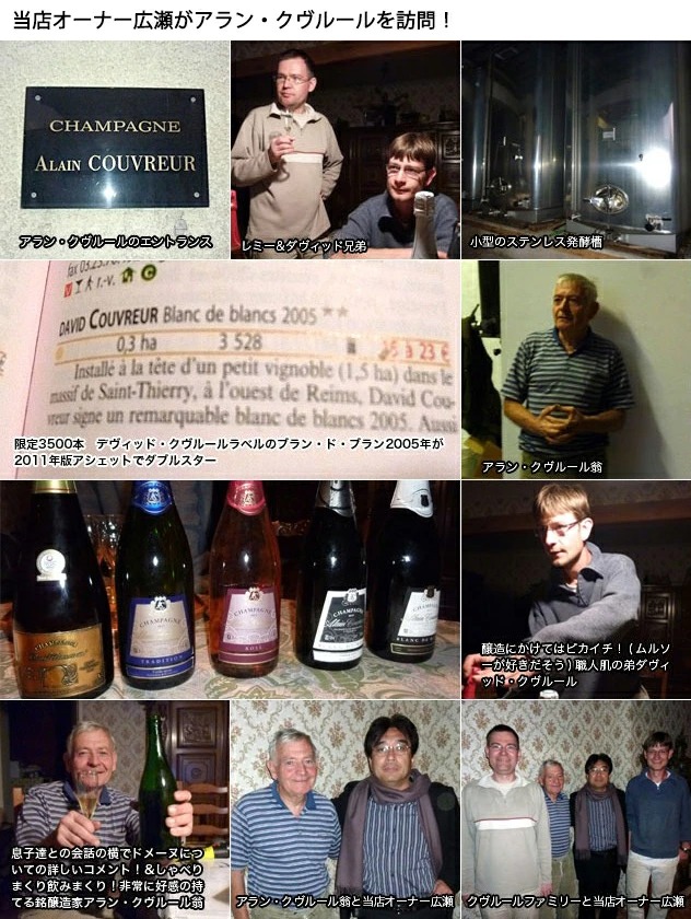 また、職人肌の弟、ダヴィッド・クヴルール(写真右)が自らの名を冠し、限定3500本のみで初リリースした入魂の「ブラン・ド・ブラン2005」も、2011年度版の「ギド・アシェット」で2つ星を獲得した逸品です。