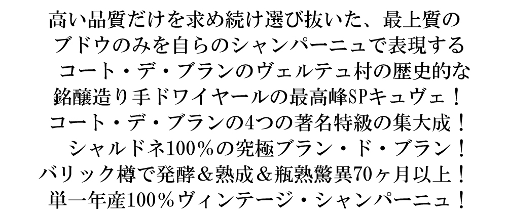 シャルドネの聖地コート・デ・ブラン!しかもシャンパーニュ愛好家がシャンパ-ニュに求めるミネラル感そのものが存在する貴重なシャンパーニュの聖地コート・デ・ブランのグラン・クリュ特級100%