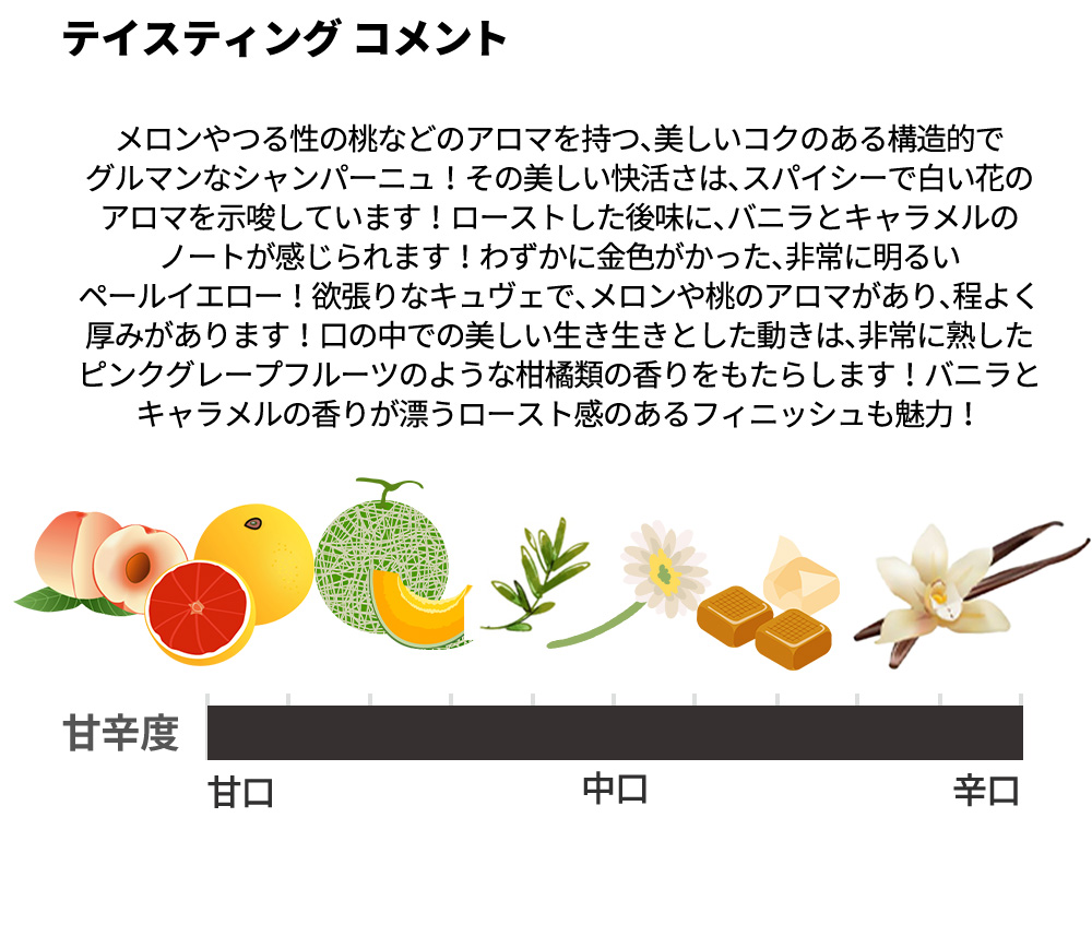 ヴィンテージワインにしてもリザーブワインにしても理想的な在庫方針を守っており、それゆえに大手ブランドにも見劣りしない、豊潤でふくらみのあるシャンパンが造られている。そのうえ、この品質にしては価格が大変手ごろである。