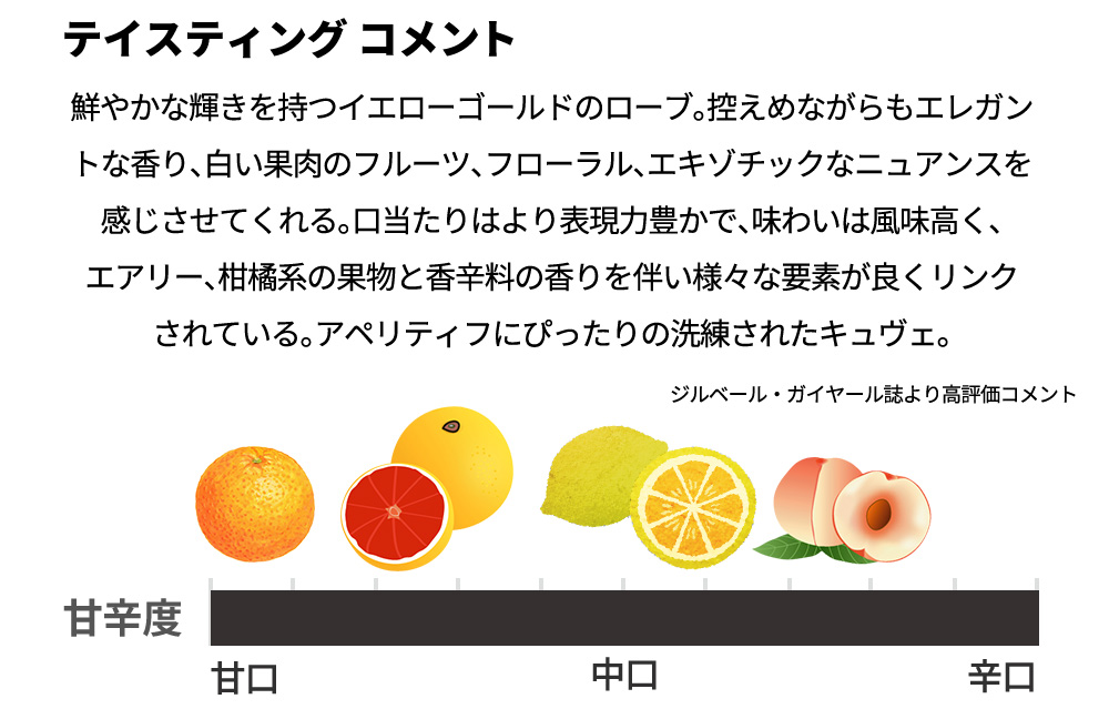 シャルドネの繊細さとピノ・ノワールの華やかな果実味の両方を生かし、バランス良く仕上げたシャンパーニュです!白い果肉の果実のアロマが口中にたっぷりと広がります。アペリティフから食事まで、幅広く相性の良いシャンパーニュです。もちろん正規品の素晴らしい状態で限定少量入荷!