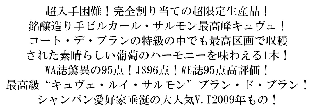 自然な風味(アーモンドペースト、フレーク状のブリオッシュ、白い果実、白胡椒)のバランスが美しく、爽やかです。荘厳な個性を持つ、この力強いキュヴェ は、驚くほどに長続きするアロマ(カルダモン、フレッシュマンゴー、シトロン キャビア)へと向かうファイナルが特徴です。