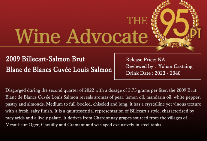 「洋梨、レモンオイル、マンダリンオイル、白胡椒、ペストリー、アーモンドのアロマを放つ。ミディアムからフルボディで、彫りが深く、余韻が長く、クリスタルのようでありながらワインらしいテクスチャーを持ち、後味はフレッシュで塩辛い。ビレカールのスタイルの真髄を表しており、キビキビした酸と生き生きとした味わいが特徴。」と大注目!