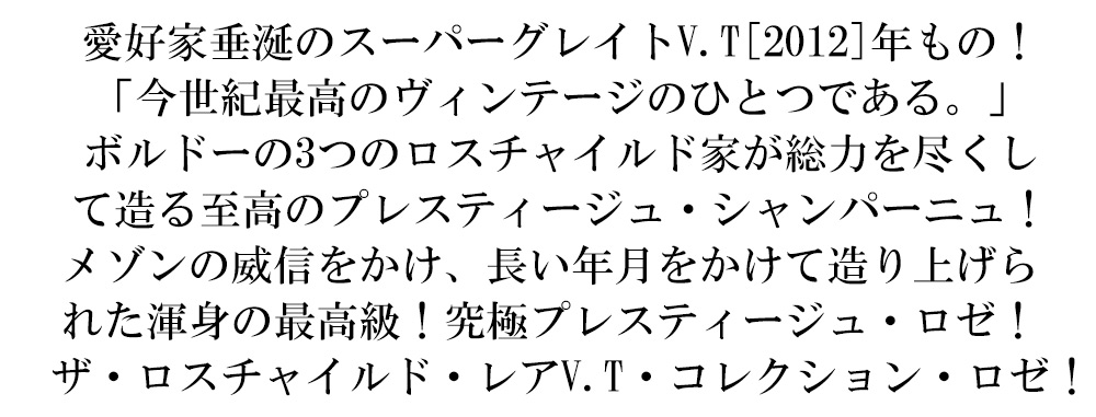 ザ・ロスチャイルドが誇る最高峰レア・コレクション・ロゼ・シャンパーニュがグレイトヴィンテージ[2012]年で正規品で豪華木箱入りで限定少量入荷!
