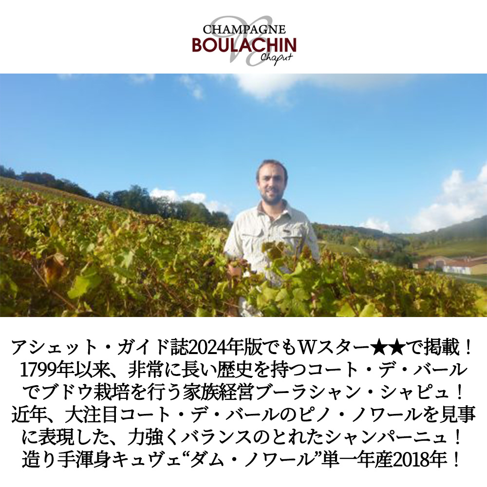1799年以来の歴史を持つコート・デ・バールのこの斜面でブドウを栽培を行っている家族経営のシャンパーニュ・メゾン・ブーラシャン・シャピュからピノ・ノワール100%の究極ブラン・ド・ノワールのこだわり高級シャンパーニュ!