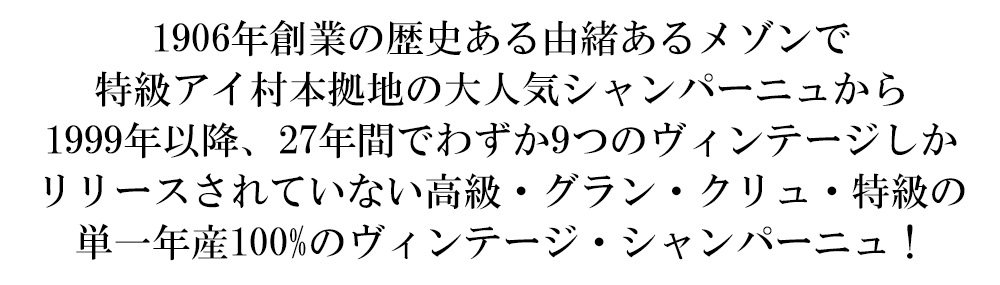| ■生産地 | フランス シャンパーニュ AOC グラン・クリュ ミレジメ シャンパーニュ |