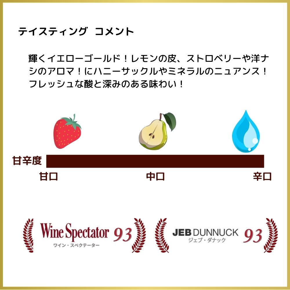 ワインスペクテーターは「研ぎ澄まされた酸が直線的なドライブ感と繊細な輪郭を与え、クリーミーなムースとクレーム・ド・カシス、全粒粉トースト、リンゴのクリーム煮の重層的な風味を切り裂き、挽いたショウガ、カルダモン、ホワイト・ペッパーのニュアンスに支えられている。フィニッシュはフレッシュでミネラリー。ピノ・ノワールとシャルドネ。2022年12月解禁。2034年まで飲める。」と絶賛!