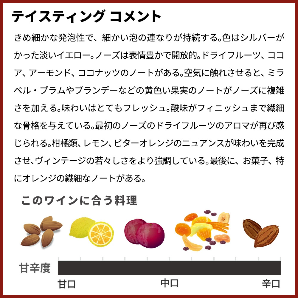 ■発酵・熟成:瓶内二次発酵、8年以上のセラー熟成