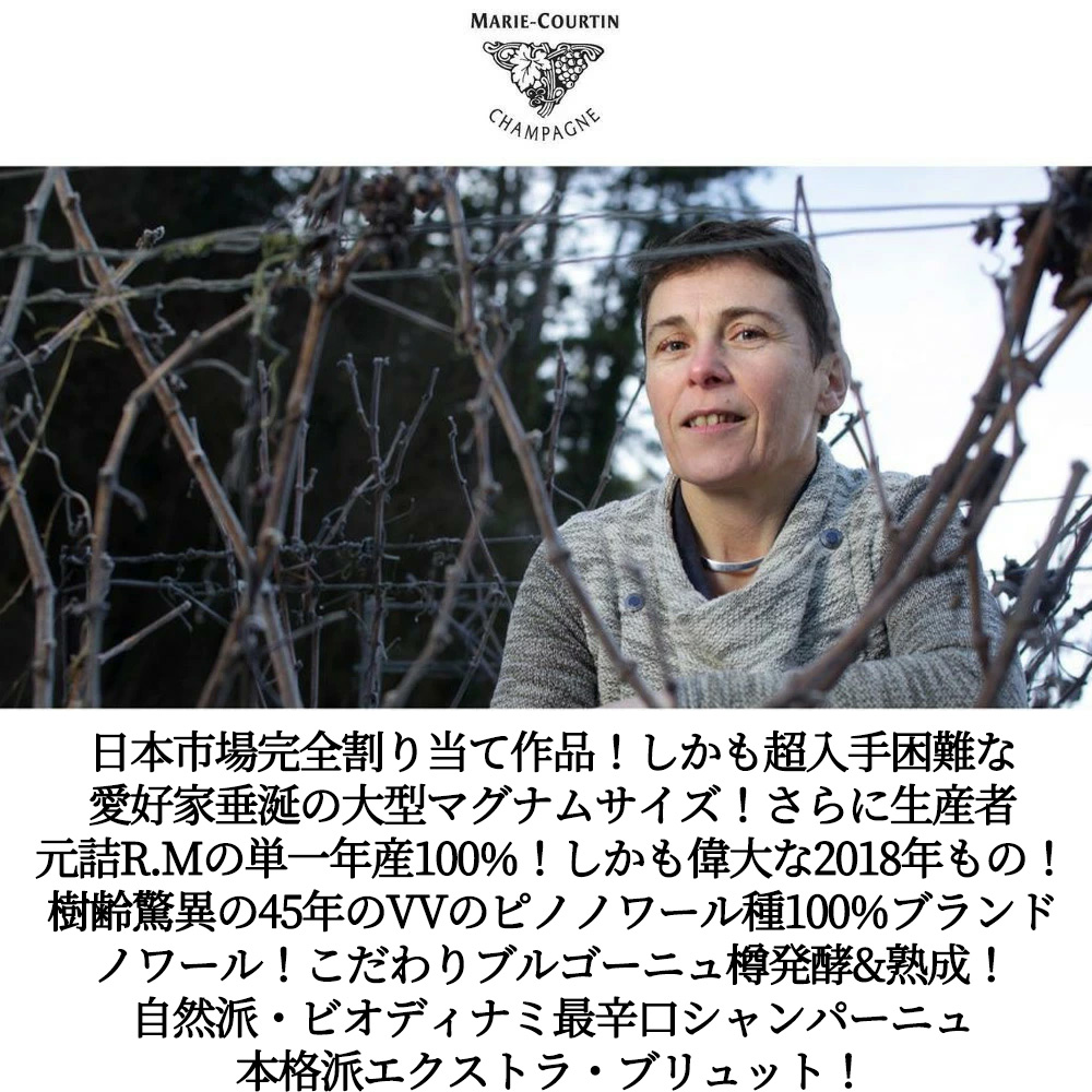 小区画からの単一品種でのワイン造り、古樹の尊重、樽発酵といった技法や、「畑の個性を表現したい」という彼女の哲学には、彼女が学んだブルゴーニュの影響が強く表れています。 尚、メゾン名の「マリー・クルタン」は、同じくぶどう栽培家だった彼女のひいおばあさんの名前で、農薬や化学肥料を一切使用せず、馬による耕作を行っていたマリーさんへの敬意を込めて命名されたものです。