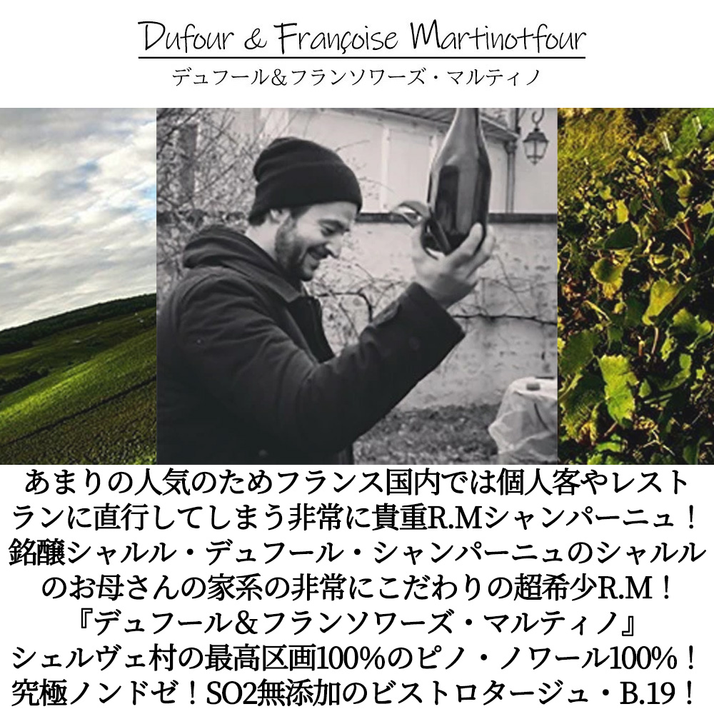 あまりの人気のためフランス国内では個人客やレストランに直行!してしまう貴重R.Mシャンパーニュ!「フランソワーズ・マルティノ」は、人気のシャルル・デュフール・シャンパーニュのシャルルのお母さん(フランソワーズ・マルティノ=デュフール)の家系のRMで、当主もお母さんです!