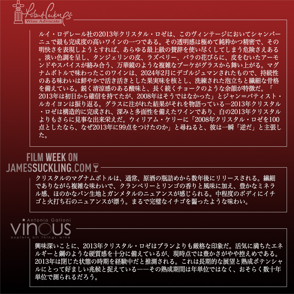 満点評価2013年の“クリスタル・ロゼ”が希少な大型マグナムサイズ (1500ml) で正規代理店輸入品でギフトボックス付きで少量入荷!