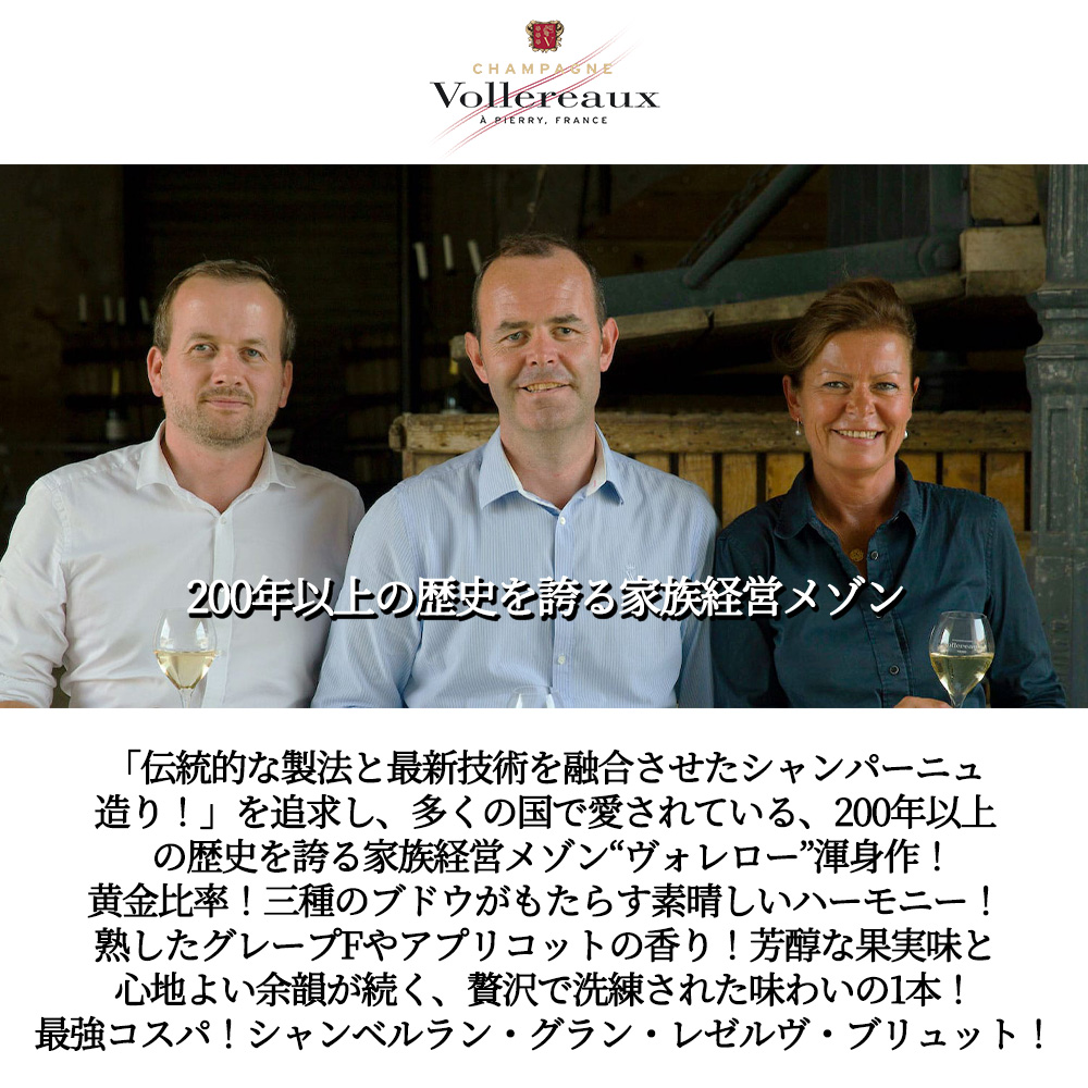 高級シャンパーニュ愛好家大注目!「伝統的な製法と最新技術を融合させたシャンパーニュ造り」を追求し、多くの国で愛されている、200年以上の歴史を誇る家族経営メゾン“ヴォレロー”が造るお値打ち高級シャンパーニュ!