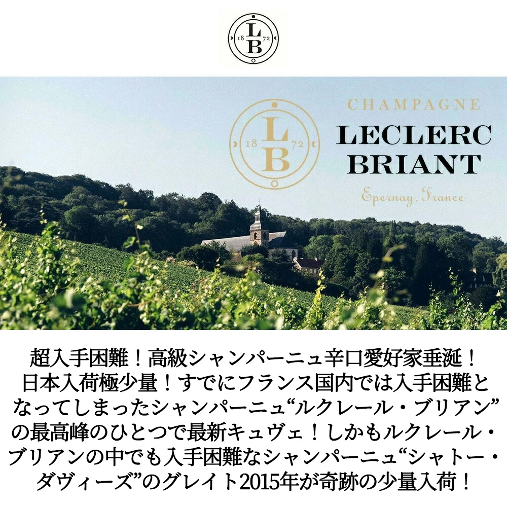すでにフランス国内では入手困難となってしまったシャンパーニュ“ルクレール・ブリアン”の最高峰のひとつで最新キュヴェ!しかもルクレール・ブリアンの中でも入手困難なシャンパーニュ“シャトー・ダヴィーズ”が奇跡の少量入荷!