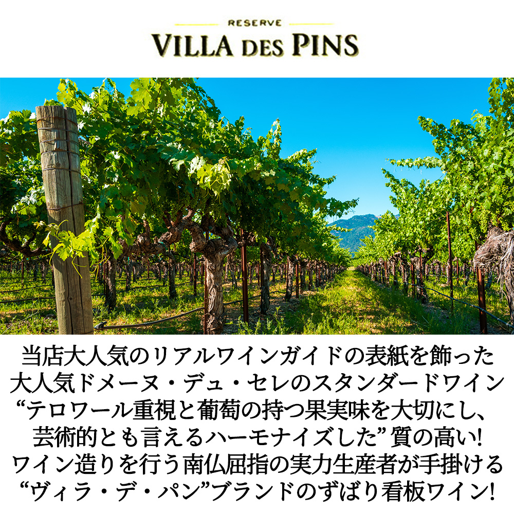 その恵まれたテロワールの個性を十分に引き出したワイン造りで定評!恵まれた場所に畑を所有し、南仏ラングドックのふりそそぐ太陽の恵みを浴びて育った葡萄を手先の技術だけに頼るのではなく“テロワール重視と葡萄の持つ果実味を大切にし芸術的とも言えるハーモナイズした”質の高いワイン造りを行うラングドック屈指の実力生産者が手掛ける“ヴィラ・デ・パン”ブランド!