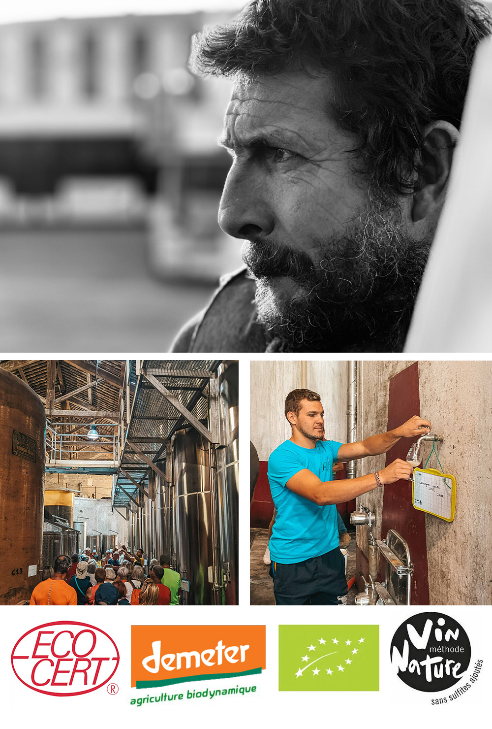 醸造は添加物を使用しないことを旨とし、ナチュラルに行っています!SO2の使用も最小限に抑え、作品によって「Vin methode Nature」の認証を取得しています!