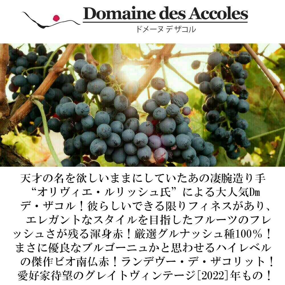 ブラインドテイスティングだと“グルナッシュ”と当てられる方は少ないと思います!まさに優良なブルゴーニュかと思わせるハイレベルの傑作ビオディナミ南仏辛口赤ワインが最新ヴィンテージでグレイトヴィンテージ[2022]年で正規品で限定少量入荷!