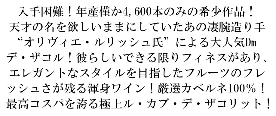 年産僅か4,600本のみの希少作品!通常のローヌとは一線を画す“エレガント”がキーワード!まずテイスティングでローヌワインとは思えない素晴らしい品質のドメーヌ・ザコル!