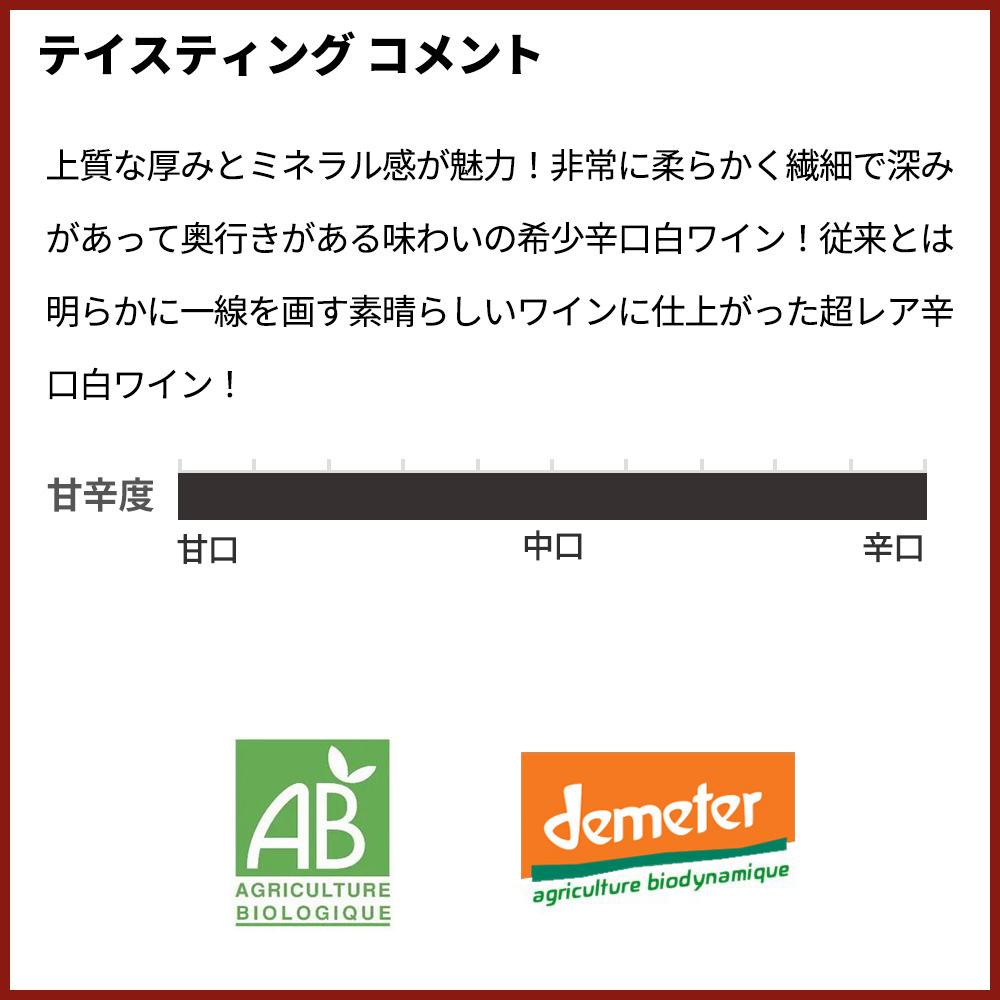 上質な厚みとミネラル感が魅力!非常に柔らかく繊細で深みがあって奥行きがある味わいの希少辛口白ワイン!従来とは明らかに一線を画す素晴らしいワインに仕上がった超レア辛口白ワインが最新ヴィンテージ[2023]年で正規品で限定少量入荷!