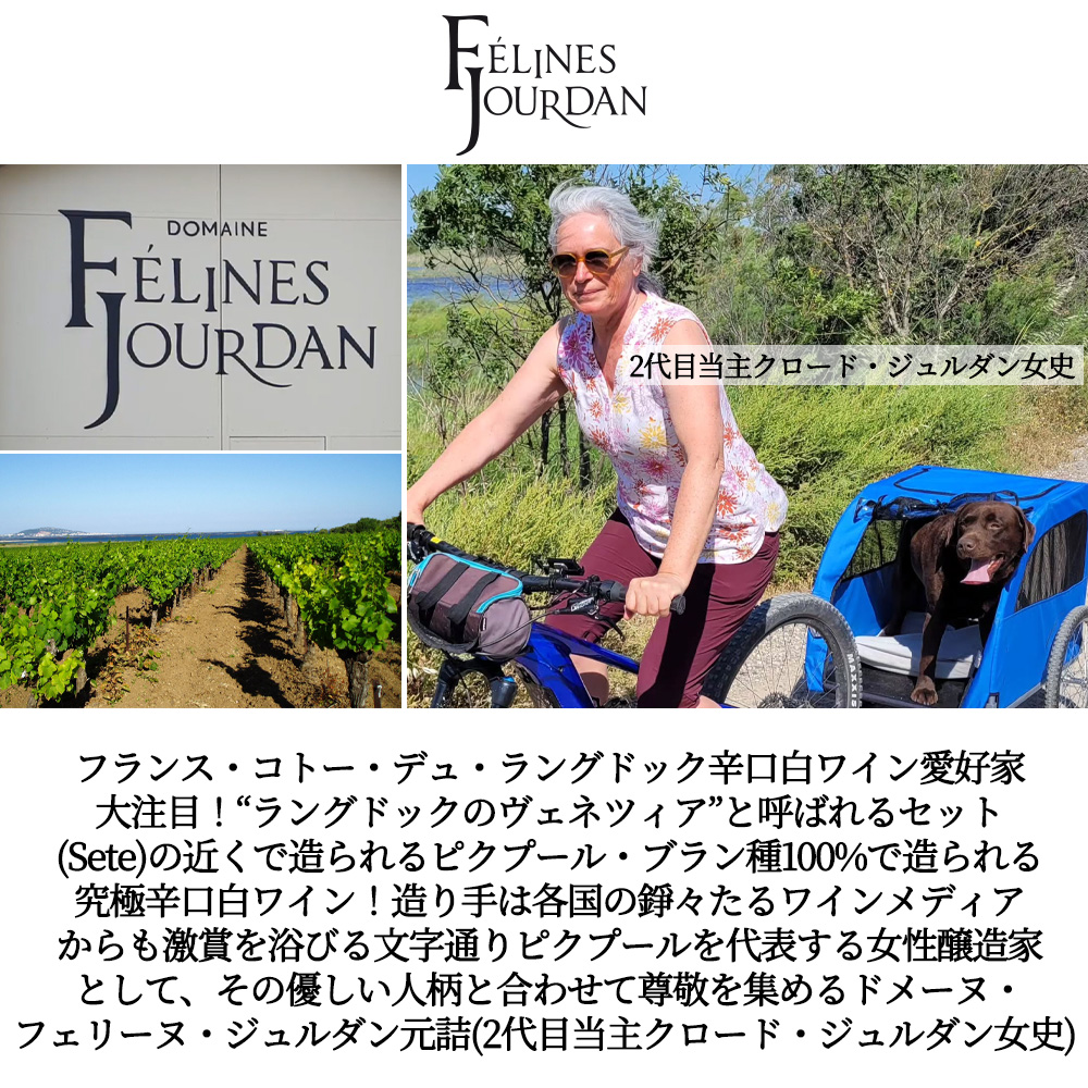 地中海沿岸のメーズ村に1983年に設立されたドメーヌで、1995年に2代目のクロード・ジュルダン女史が継承しました。同年より、所有する95ヘクタールの畑の全面積でリュット・レゾネ栽培を開始し、2021年に「HVE(Haute Valeur Environnementale、高い環境価値)」の最高段階「レベル3」の認証を取得しています。