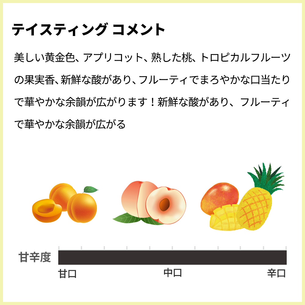 美しい黄金色、アプリコット、熟した桃、トロピカルフルーツの果実香、新鮮な酸があり、フルーティでまろやかな口当たりで華やかな余韻が広がります!新鮮な酸があり、フルーティで華やかな余韻が広がる傑作ヴィオニエが限定で少量入荷!