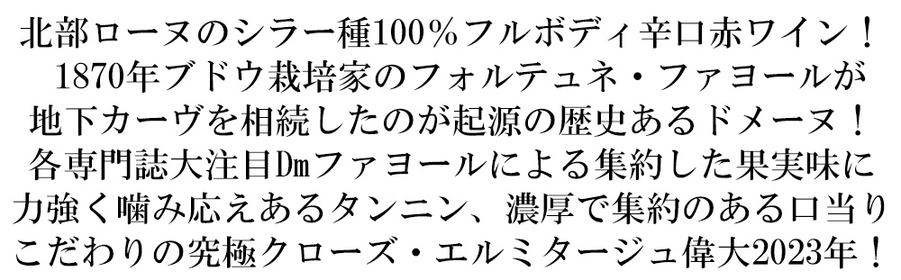 クローズ エルミタージュ サンス ローラン ファヨール 2023 ドメーヌ ファヨール フィス&フィーユ元詰 ローラン ファヨール家 シラー種100%