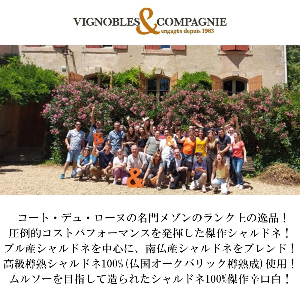 ブルゴーニュ産のシャルドネを中心に、南仏産のものをブレンドしており、完熟感が窺える厚みのある果実味に、バランスの良い樽香が加わっている。